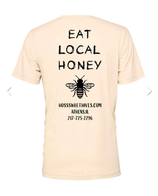 Make a statement with our "Eat Local Honey" t-shirt—a wearable ode to supporting local beekeepers and savoring the essence of your community. Crafted from soft, breathable fabric, this shirt not only promotes a sustainable lifestyle but also showcases your commitment to the natural goodness of local honey. Embrace comfort and style while advocating for the bees and the sweetness they bring to our lives with this distinctive and eco-friendly t-shirt.